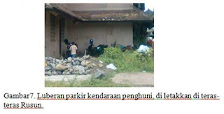 Pemanfaatan ruang “sisa” yang terbentuk antara sela-sela bangunan Rumah susun tersebut digunakan sebagai tempat bermain anak-anak kecil penghuni rusun, disamping itu ruang tersebut untuk sebagian yang ada didepan unit hunian (teras) banyak juga yang digunakan sebagai tempat usaha.