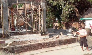 awalnya melakukan pembongkaran Serambi Timur dilakukan renovasi, seperti gambar di atas, setelahnya takmir terjadi perdebatan, arah kedepannya bagaimana, setelah bentukan serambi seperti di atas dan sudah jadi, masjid utama bagaimana dan desain yang lainnya bagaimana?