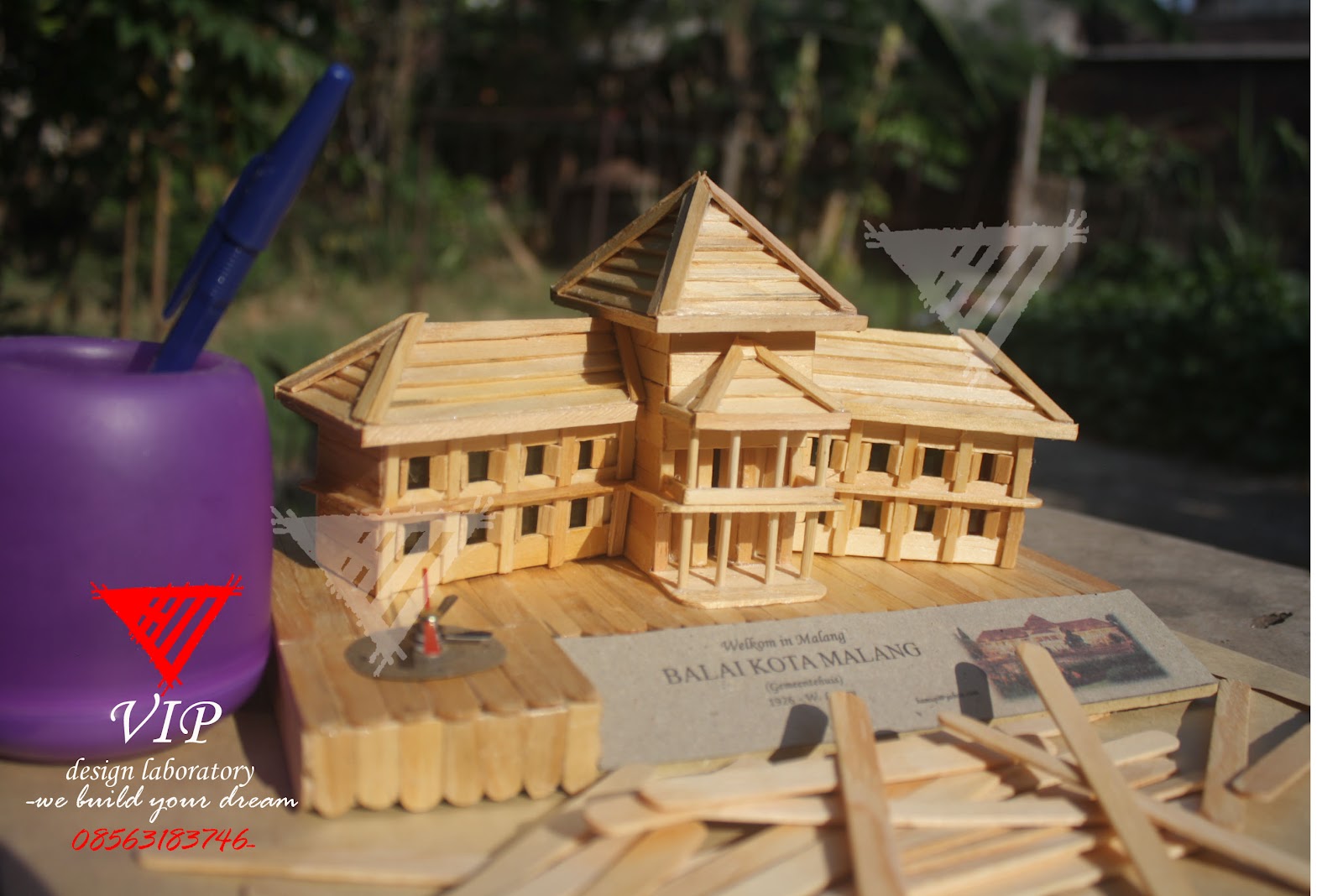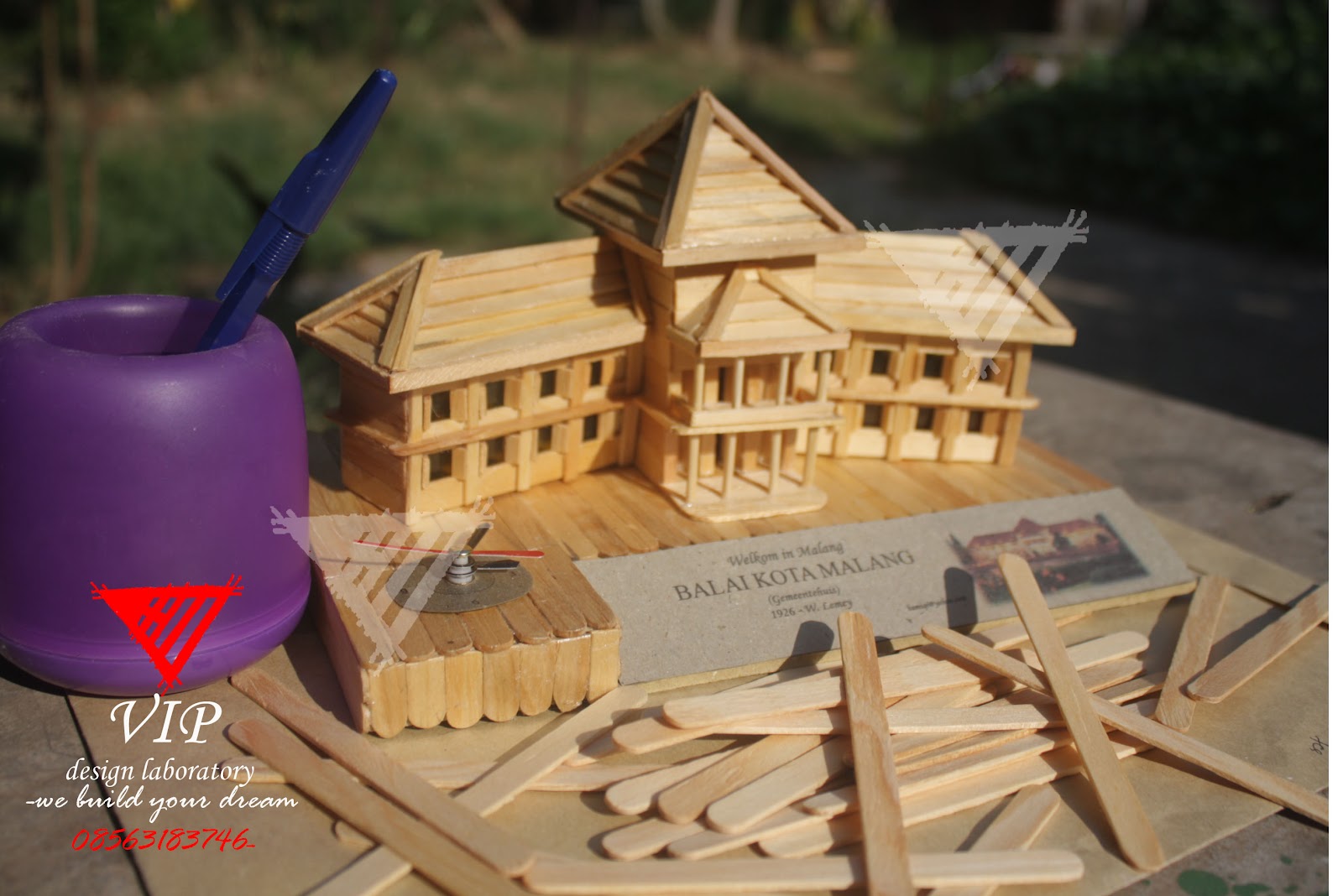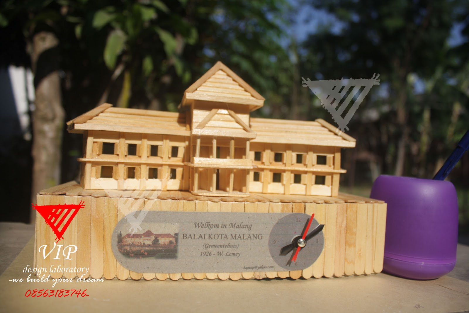 ini adalah handicraft yang terbuat dari stik es krim, yang dibuat dengan menyerupai miniatur Balai Kota Malang