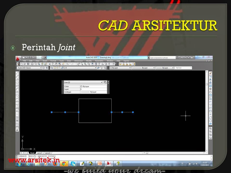 Contoh latihan dengan gambar di atas bertujuan untuk mengetahui perbedaan antara joint Command dengan Extend Command,