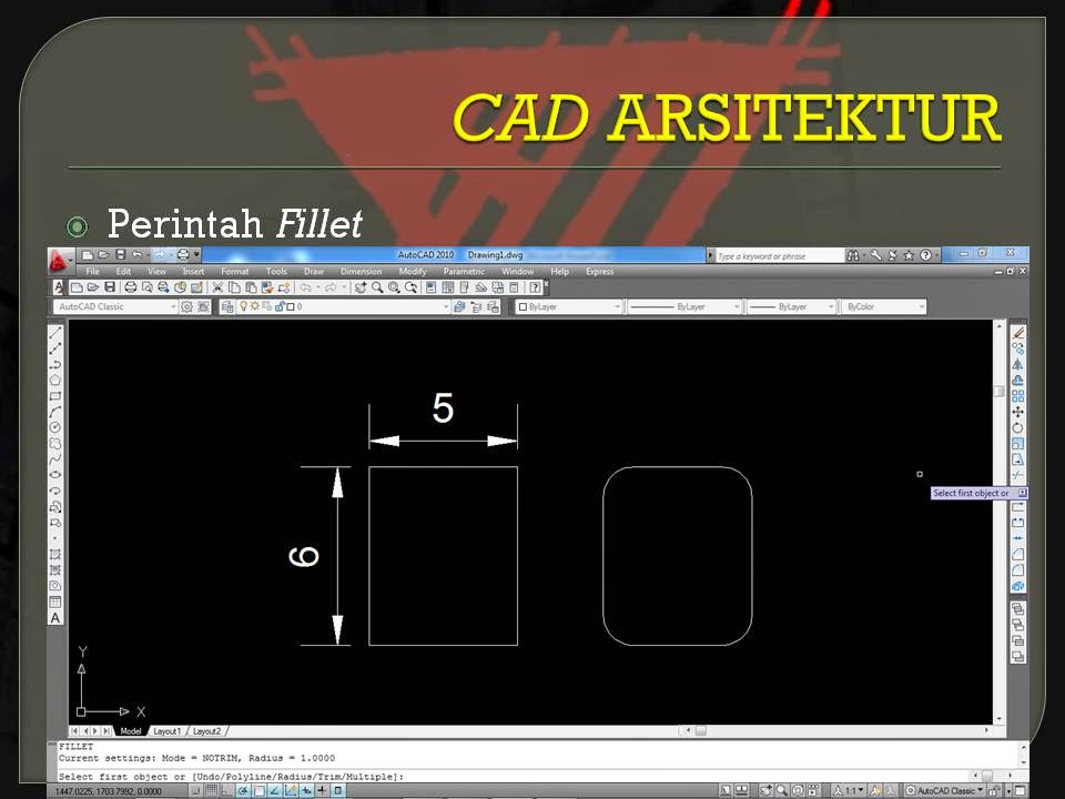Tutorial Perintah Fillet pada CAD 2D :