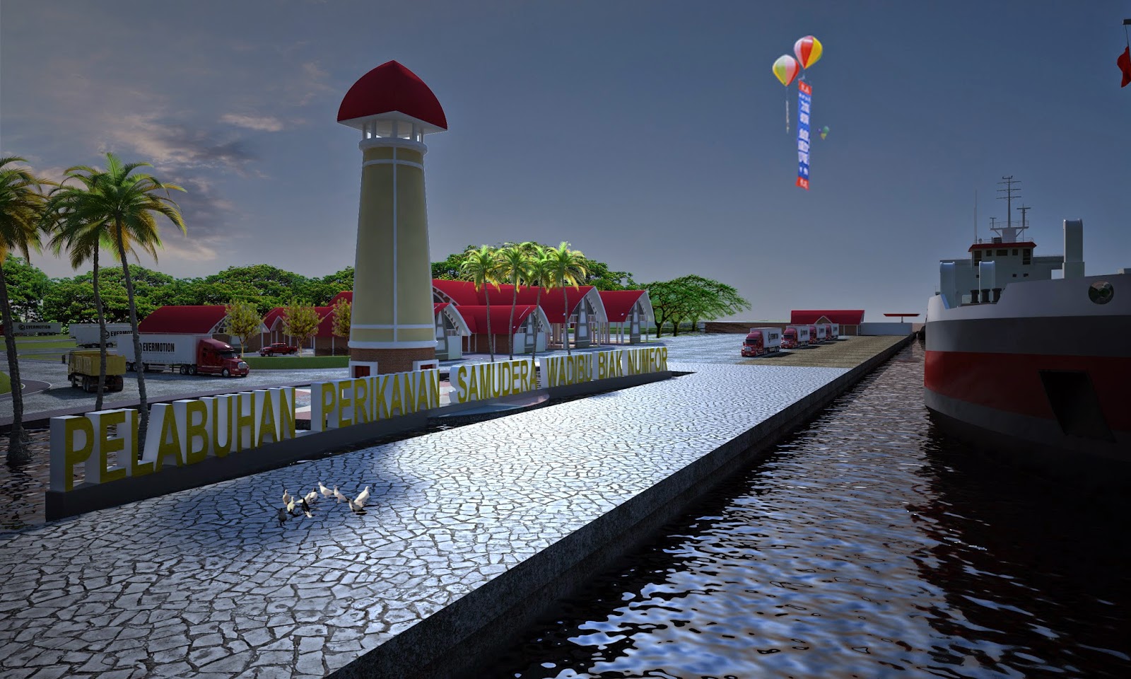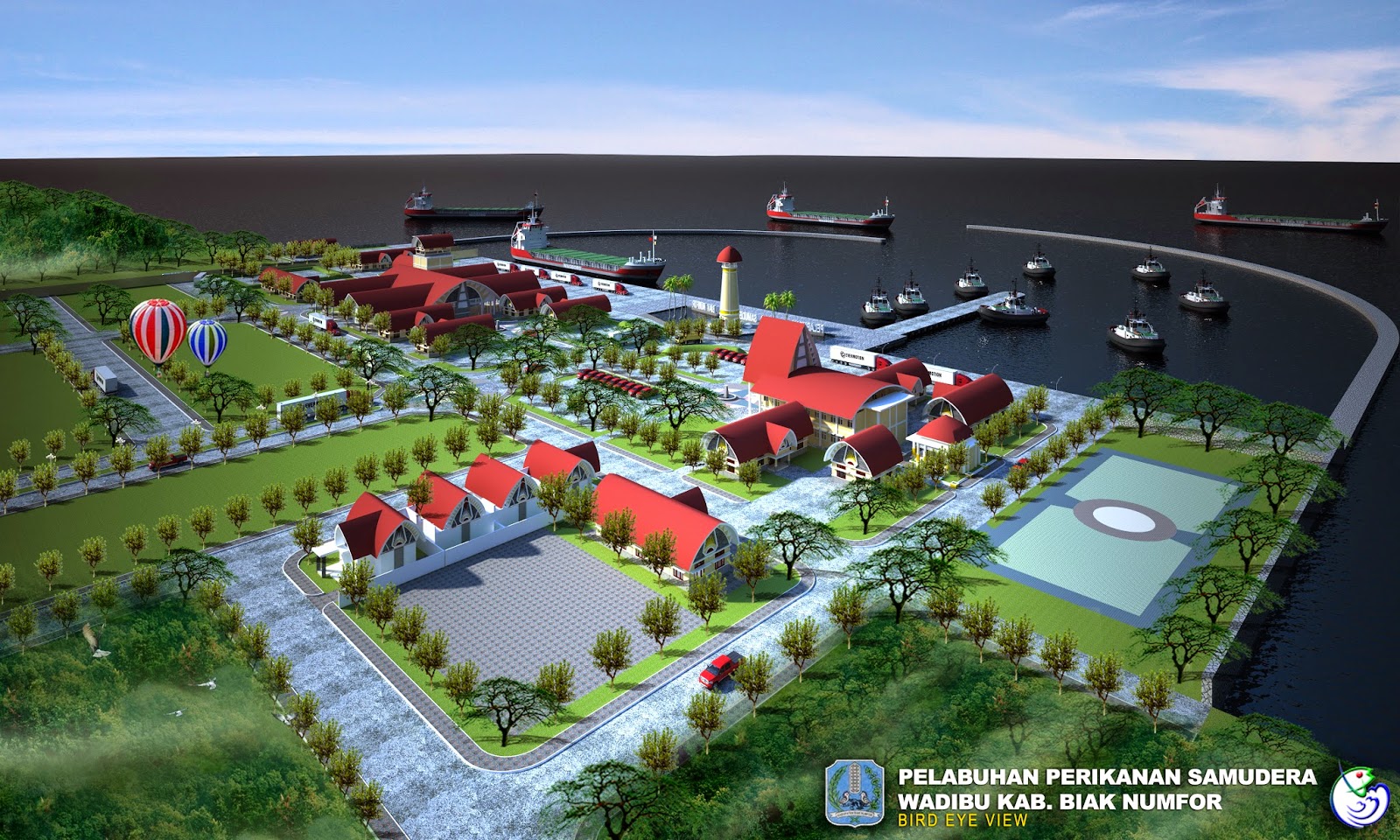 Animasi ini adalah untuk presentasi perencanaan Pelabuhan Perikanan Samudra, Wadibu di Kabupaten Biak Numfor, Papua.